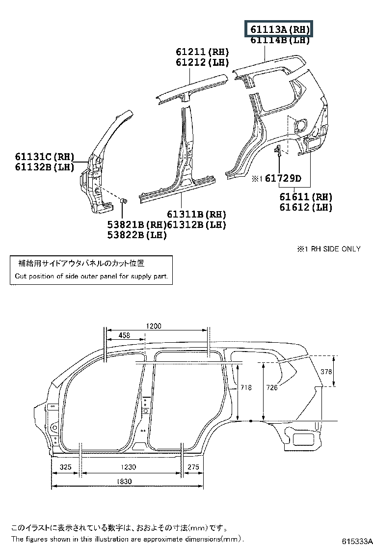 61113-60060, PANEL, SIDE, OUTER NO.2 RH