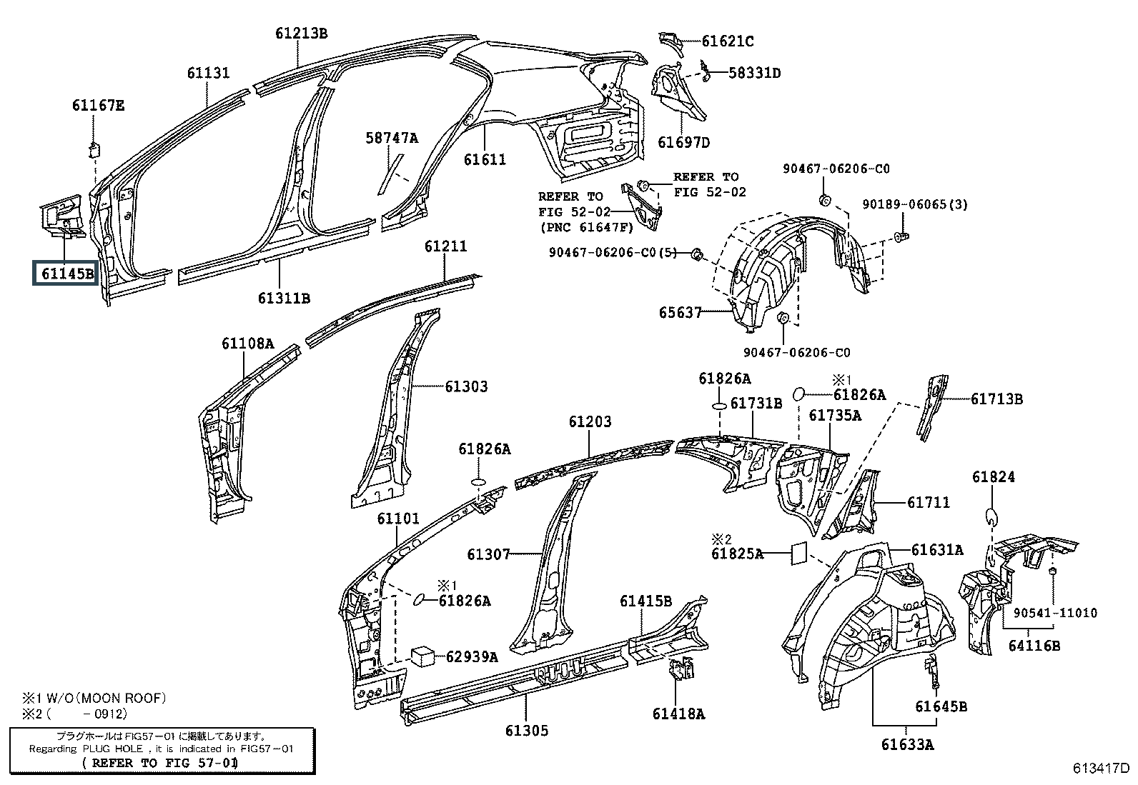 61145-33050, GUSSET, FRONT BODY PILLAR, LOWER RH