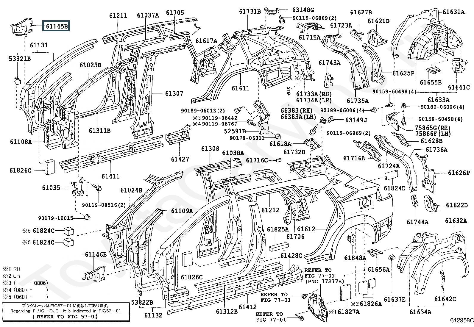 61145-48020, GUSSET, FRONT BODY PILLAR, LOWER RH