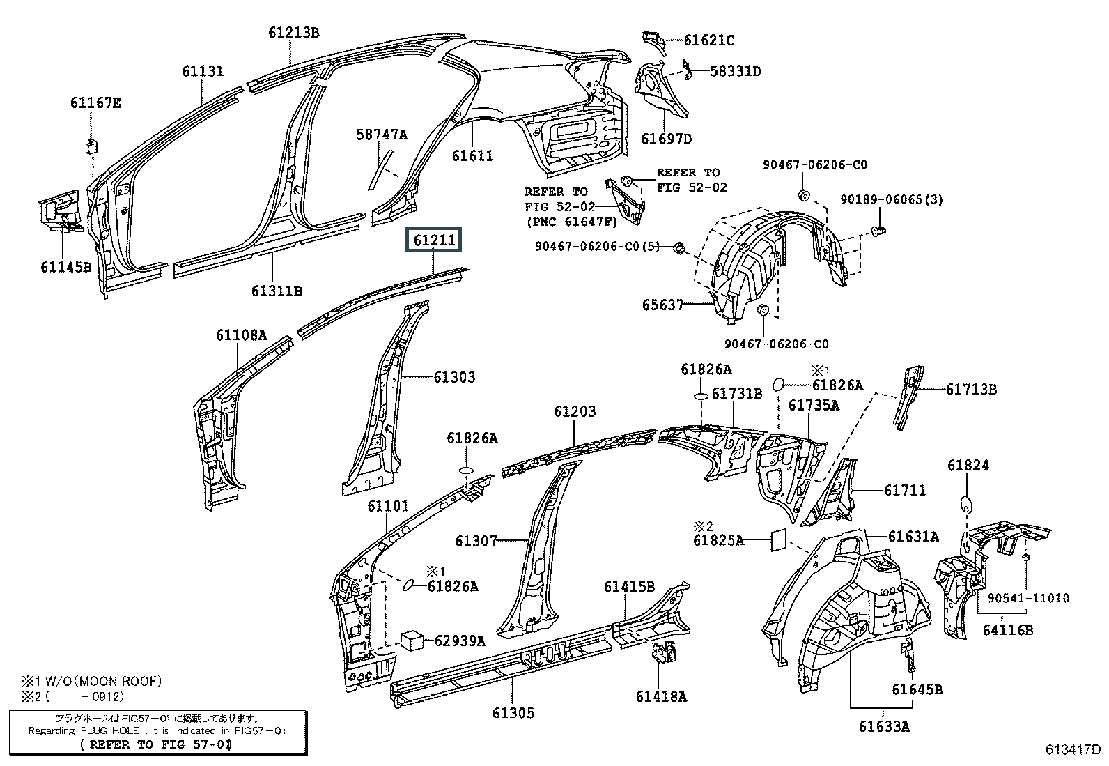 61201-33020, RAIL, ROOF SIDE, OUTER RH