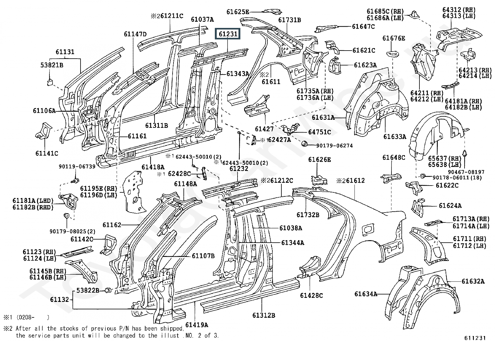 61201-50010, RAIL, ROOF SIDE, INNER RH