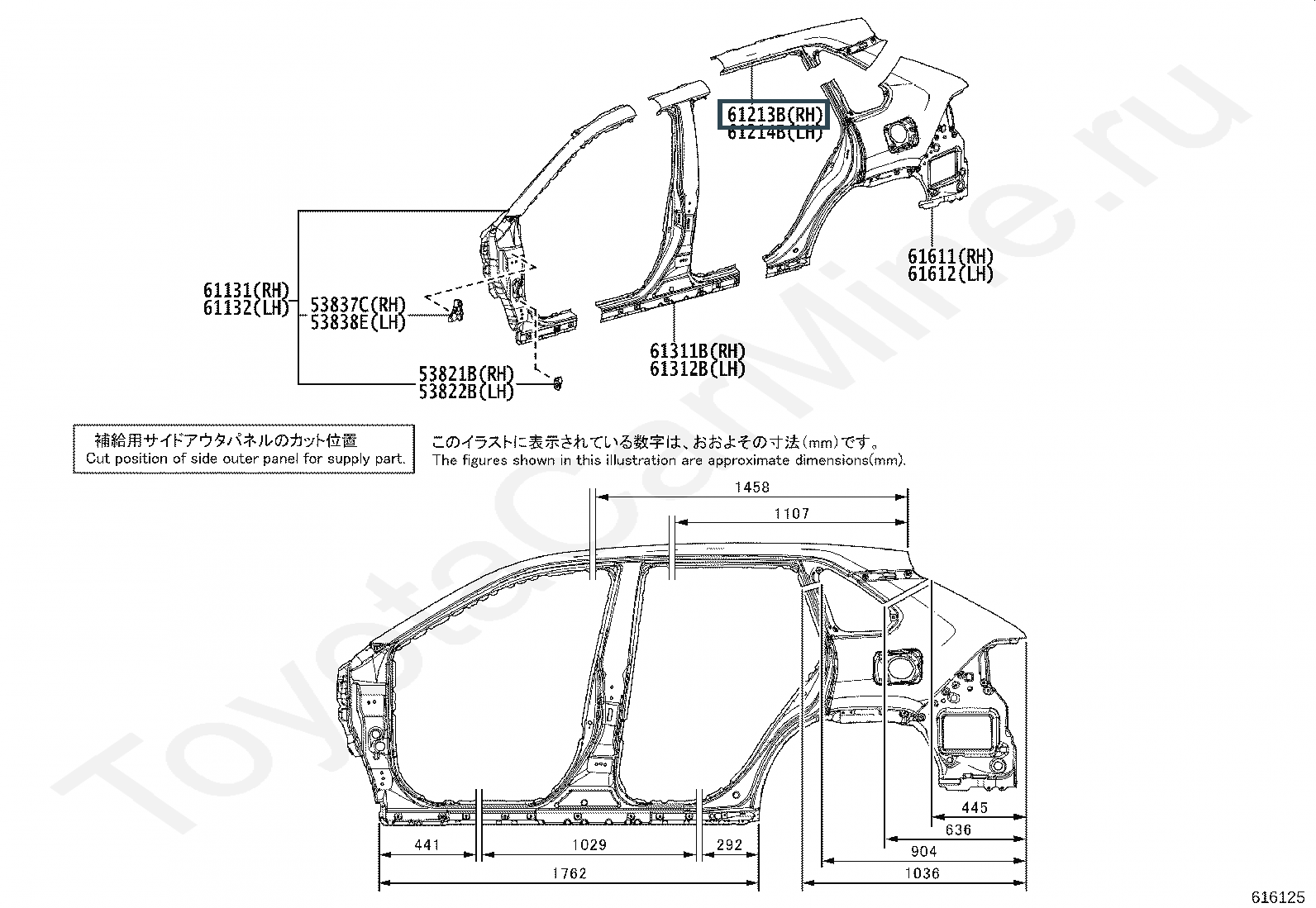61210-0R040, RAIL, ROOF SIDE, OUTER NO.2 RH