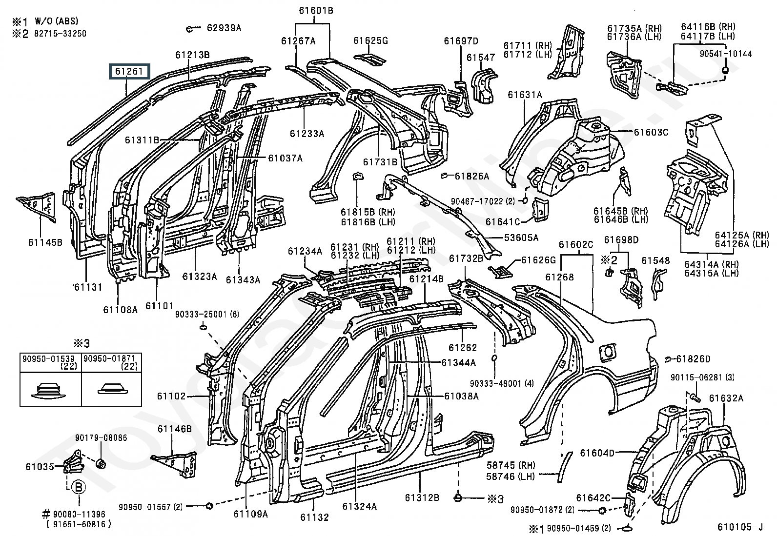 61261-33010, CHANNEL, ROOF DRIP, RH