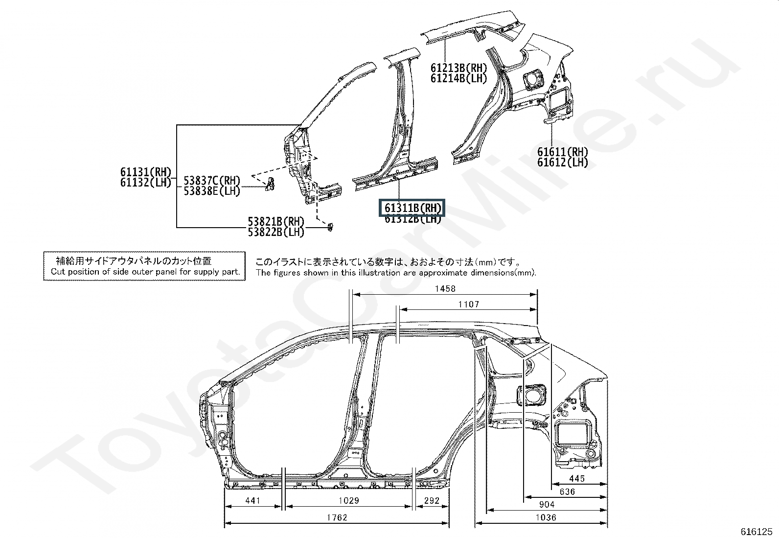 61311-42050, PILLAR, CENTER BODY, OUTER RH