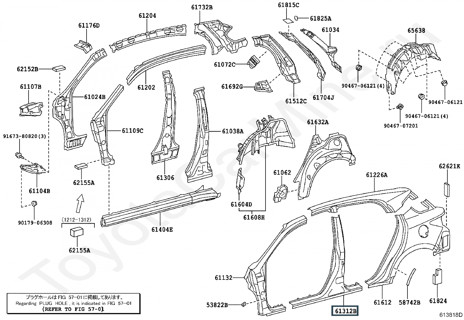 61312-76010, PILLAR, CENTER BODY, OUTER LH