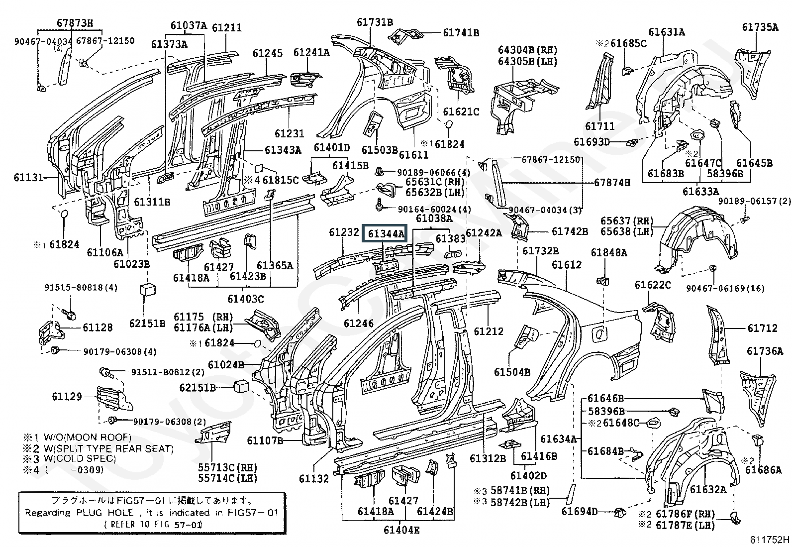 61344-05030, PILLAR, CENTER BODY, INNER LH