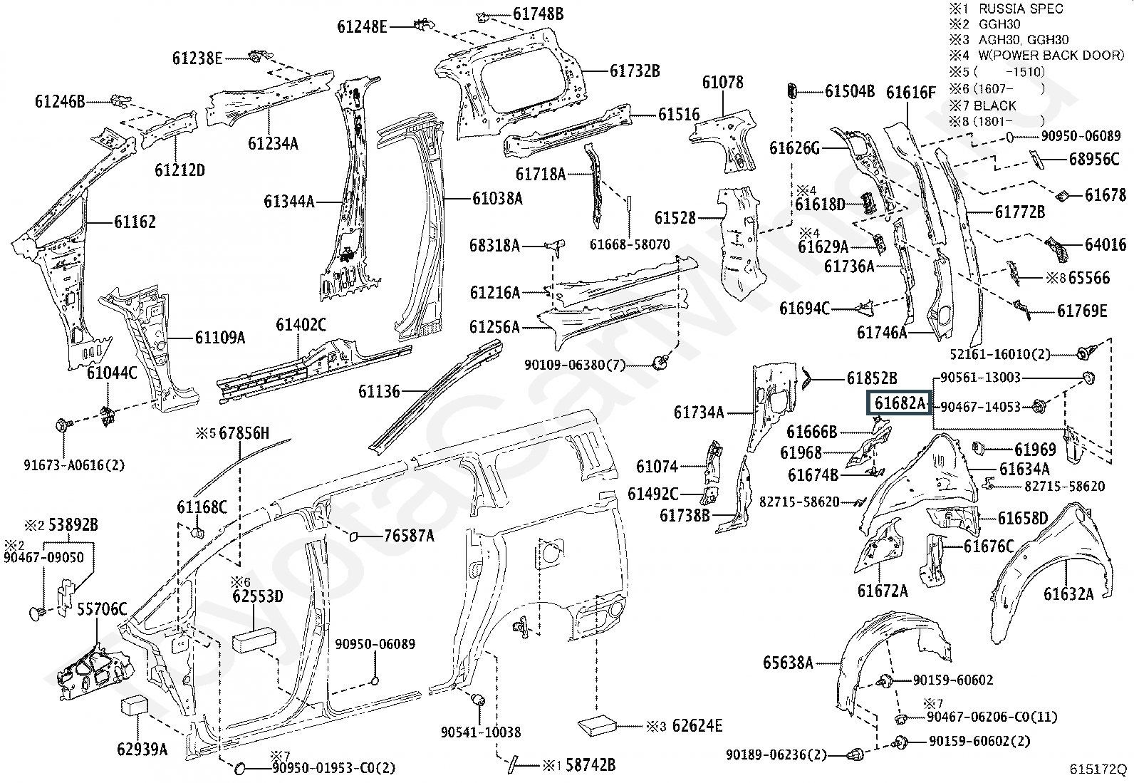 61682-58050, EXTENSION, REAR WHEEL OPENING, LH