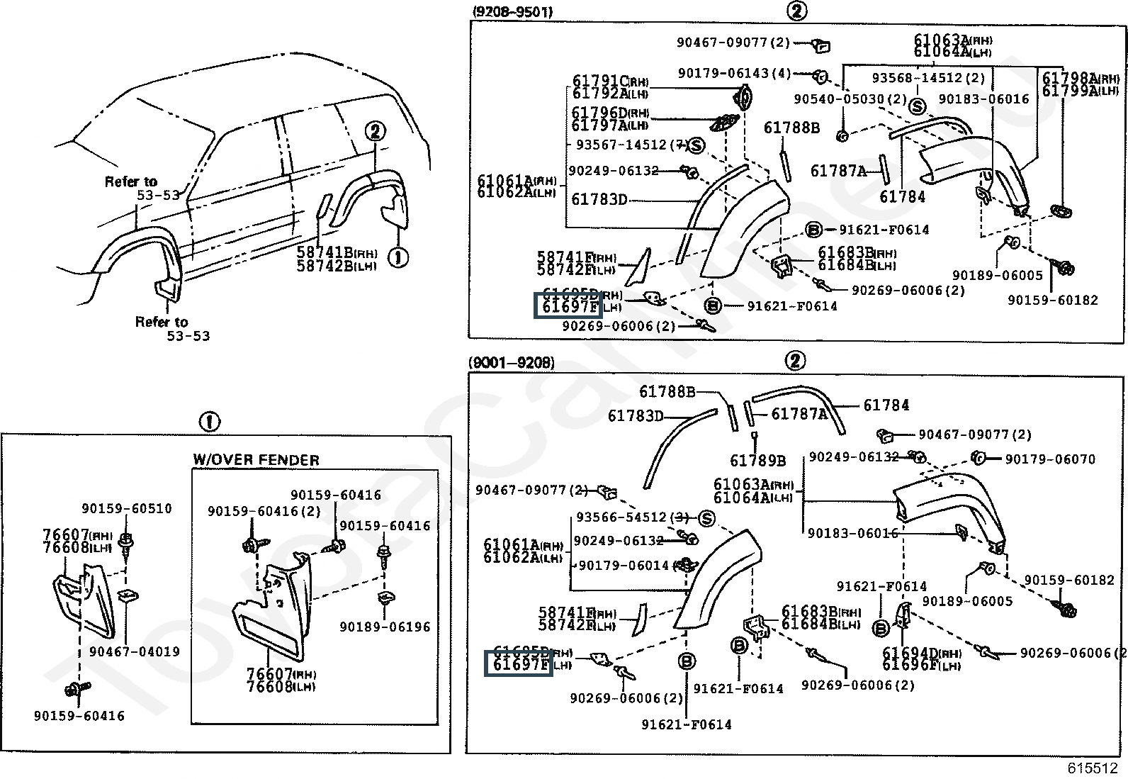 61697-60010, BRACKET, REAR WHEEL OPENING, NO.3 LH