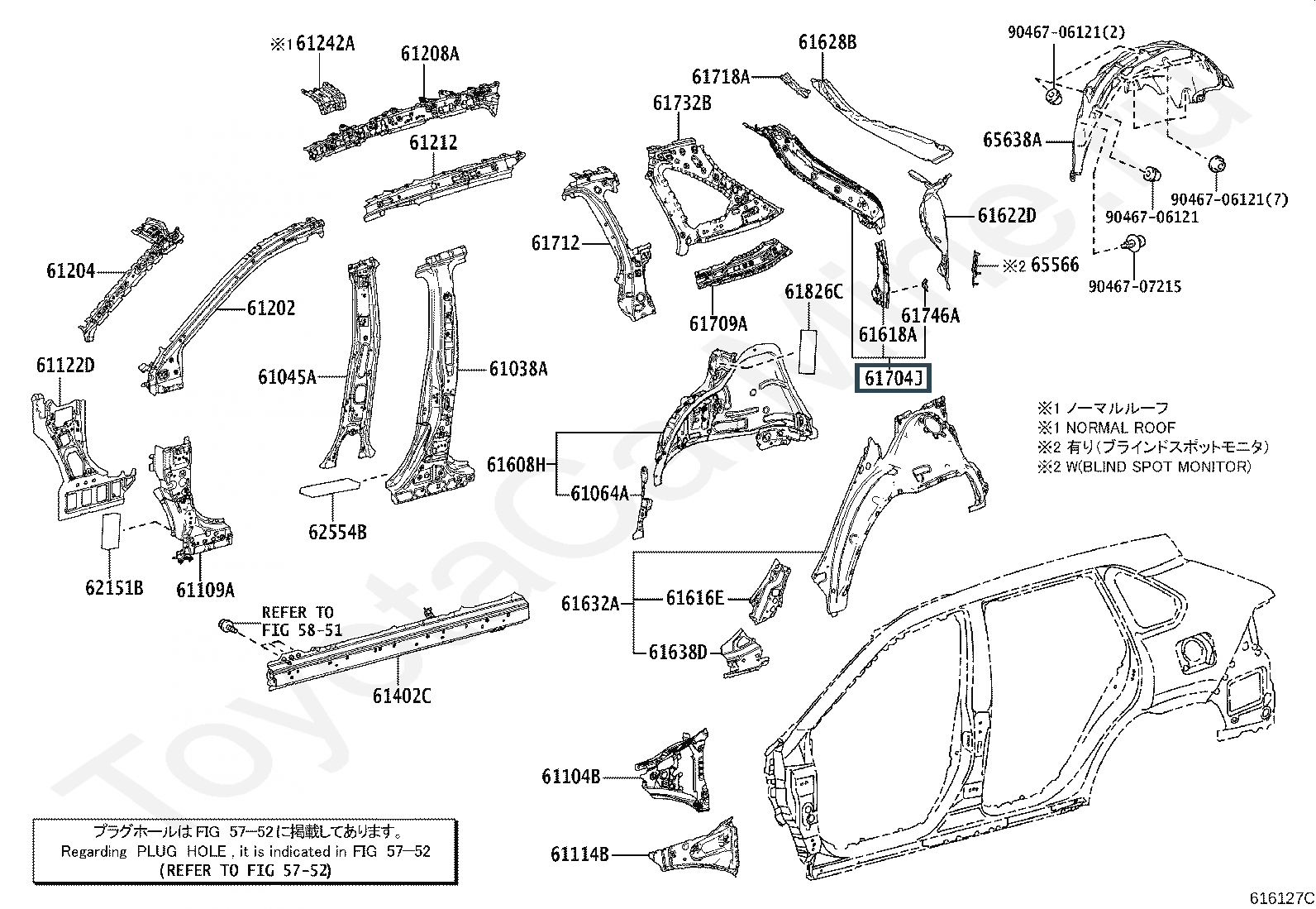 61704-42900, REINFORCEMENT SUB-ASSY, ROOF SIDE, INNER LH