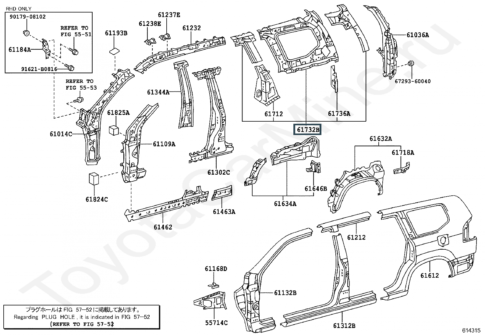 61706-60611, PANEL, ROOF SIDE, INNER LH