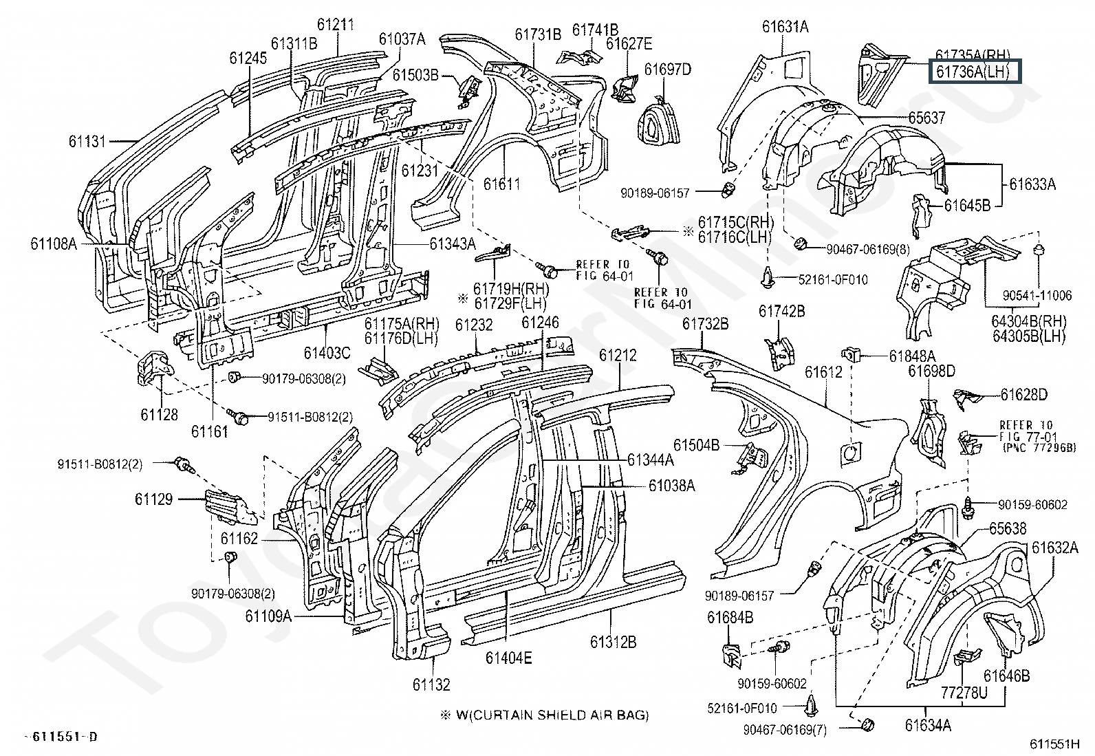 61736-02030, PANEL, ROOF SIDE, INNER REAR LH