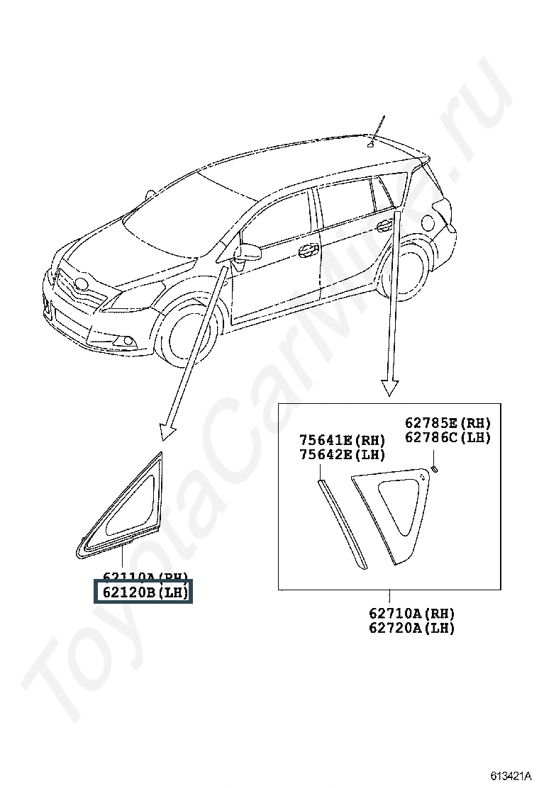 62120-0F010, Глухое стекло переднее левое