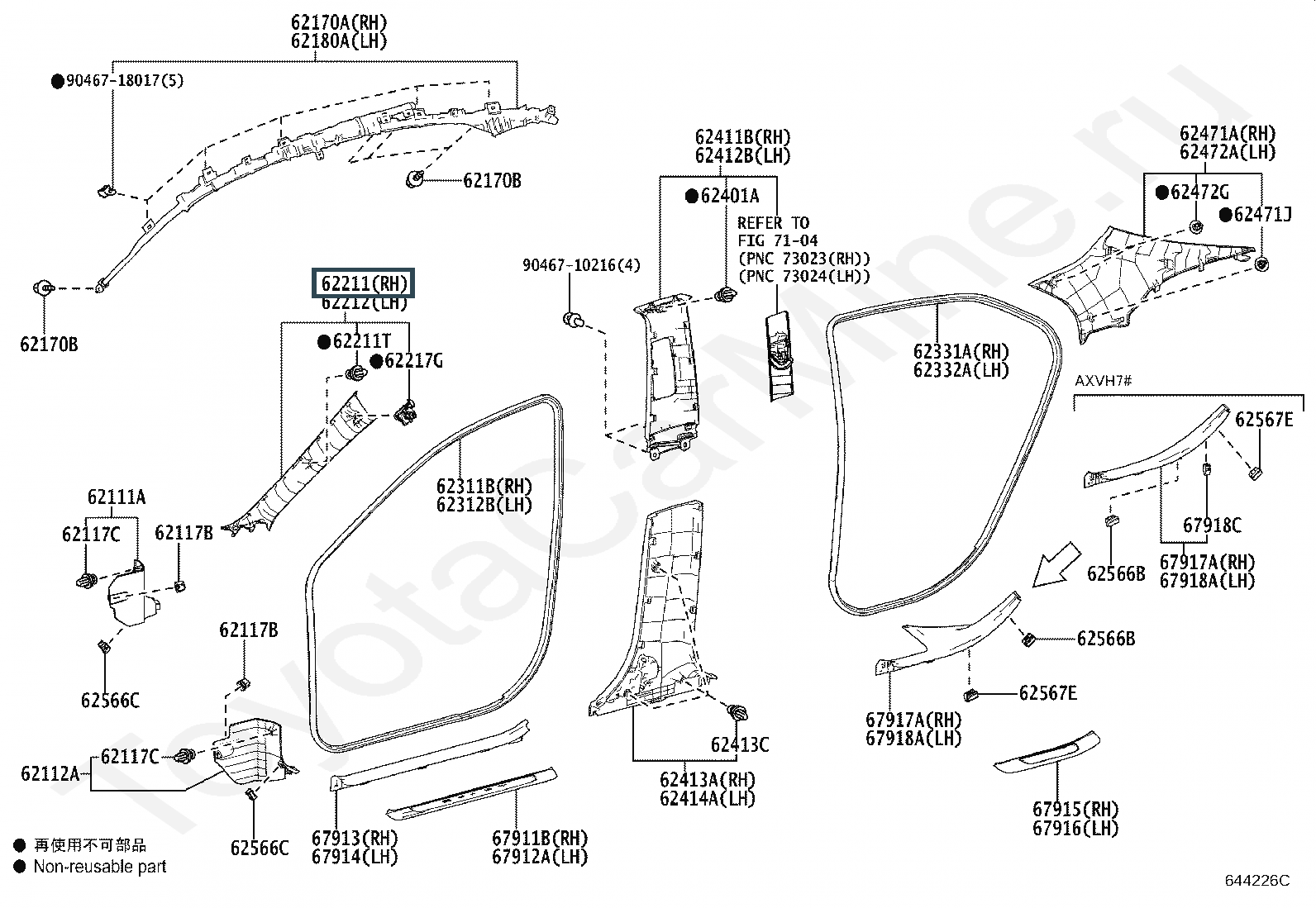 62211-06180-B0, GARNISH, FRONT PILLAR, RH