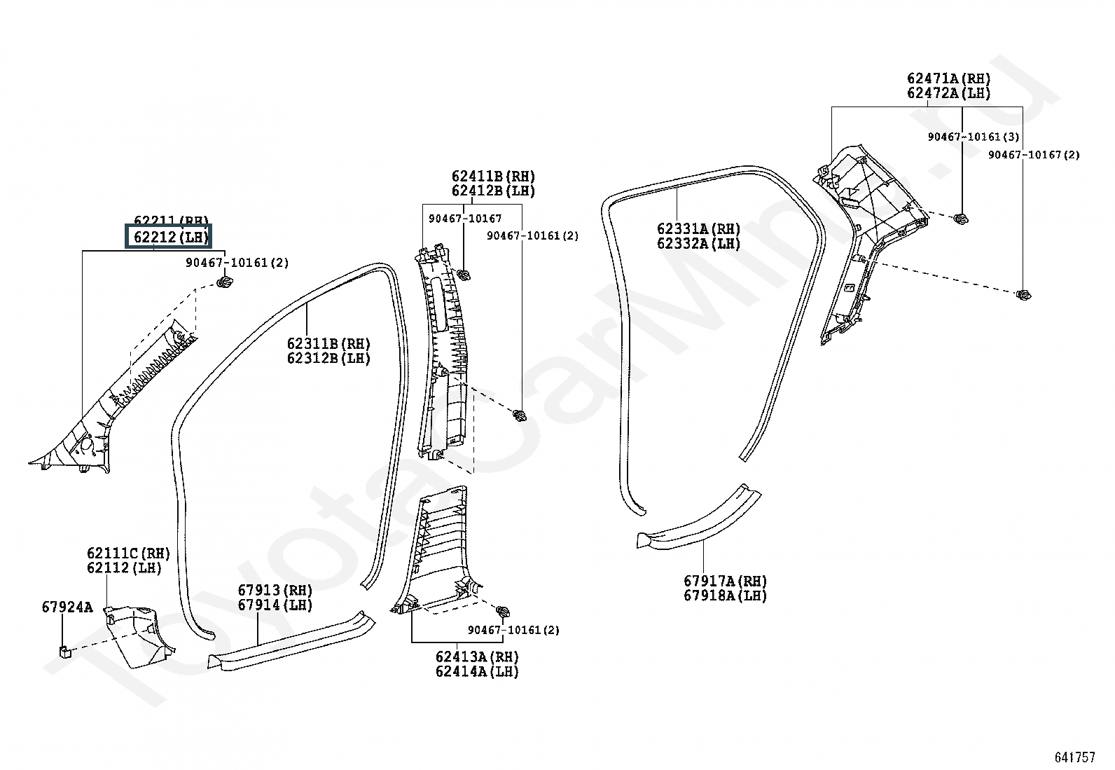 62212-0D070-B0, GARNISH, FRONT PILLAR, LH