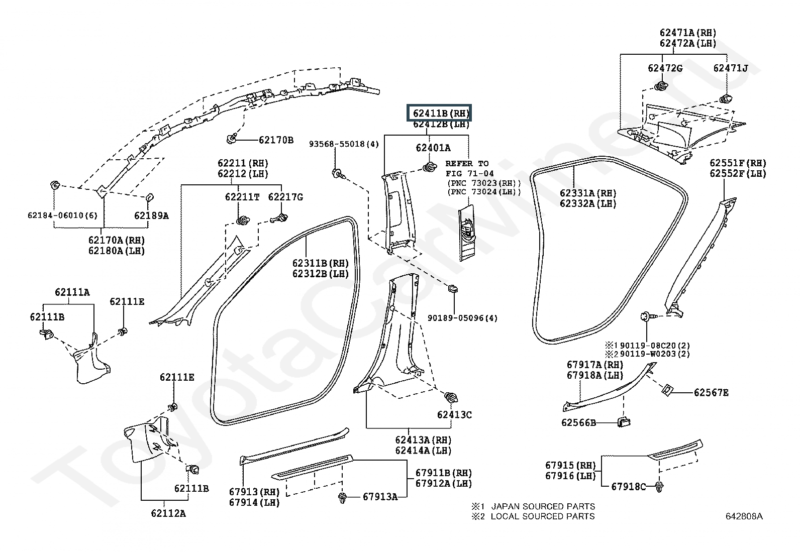 62410-33170-B0, GARNISH, CENTER PILLAR, UPPER RH