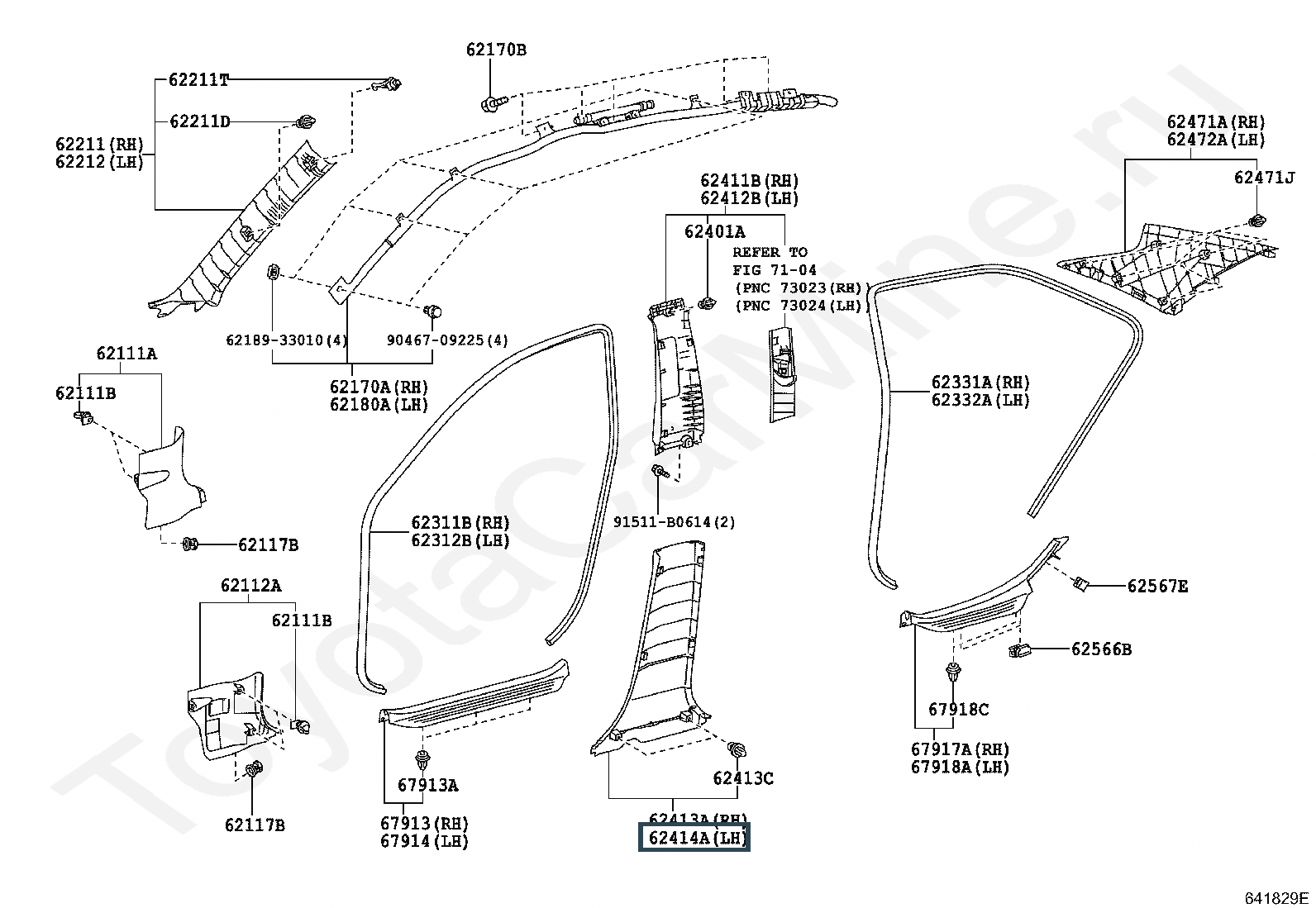 62414-33070-E0, GARNISH, CENTER PILLAR, LOWER LH