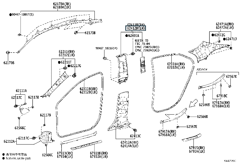 62420-33190-B2, GARNISH, CENTER PILLAR, UPPER LH
