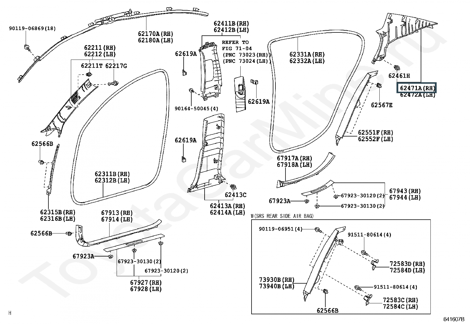 62471-30480-B0, GARNISH, ROOF SIDE, INNER RH