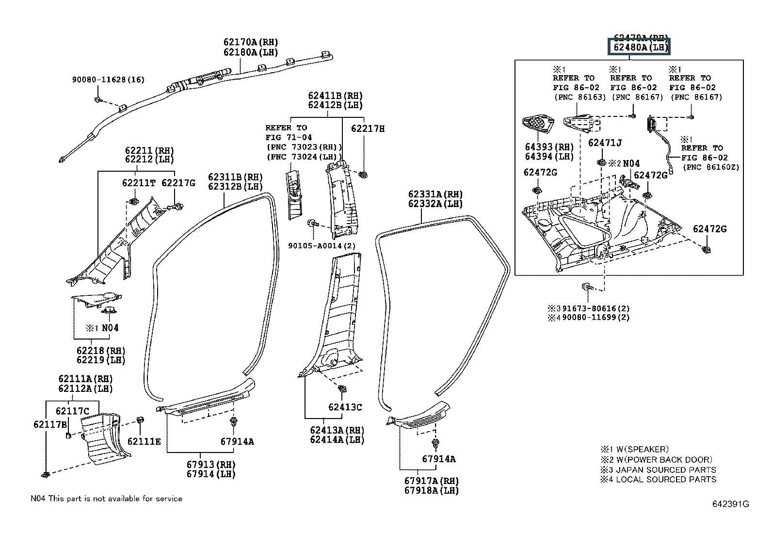 62480-0T011-B0, GARNISH ASSY, ROOF SIDE, INNER LH