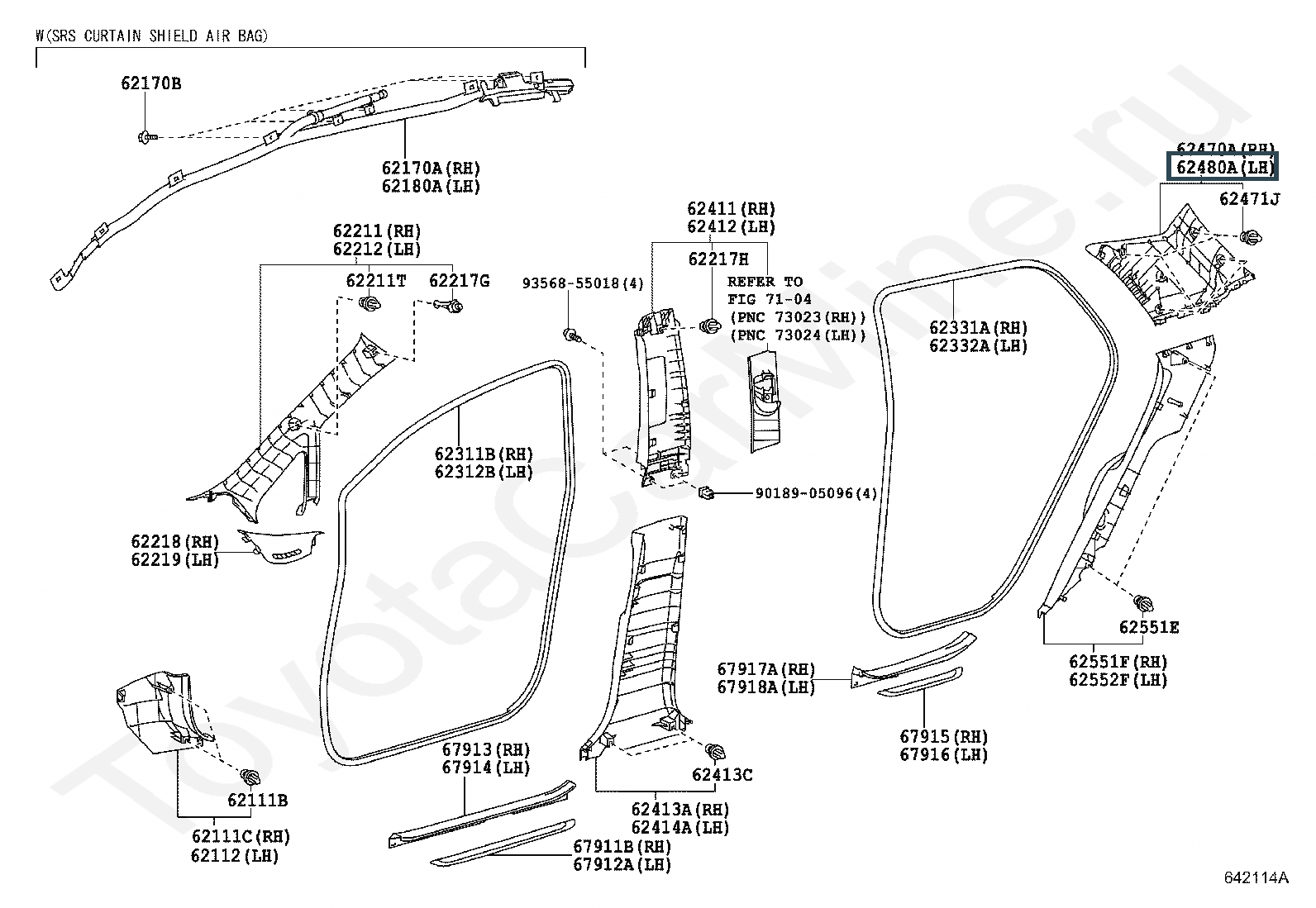 62480-12110-B0, GARNISH ASSY, ROOF SIDE, INNER LH