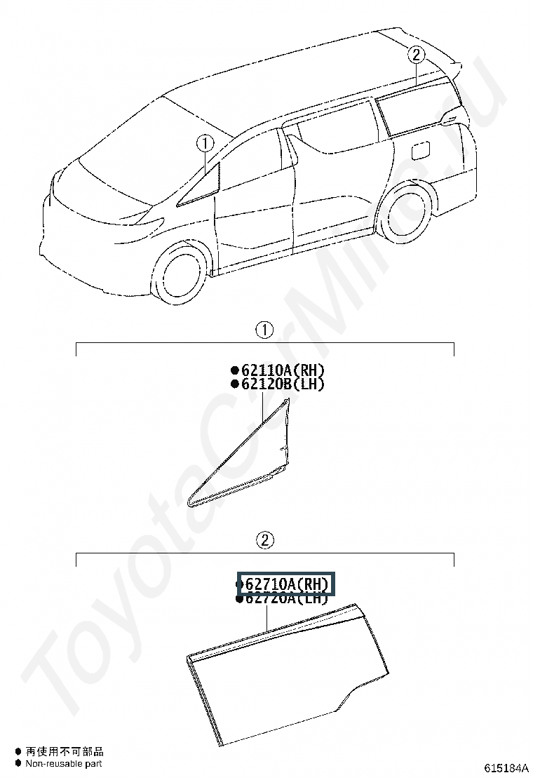 62710-58210, WINDOW ASSY, QUARTER, RH
