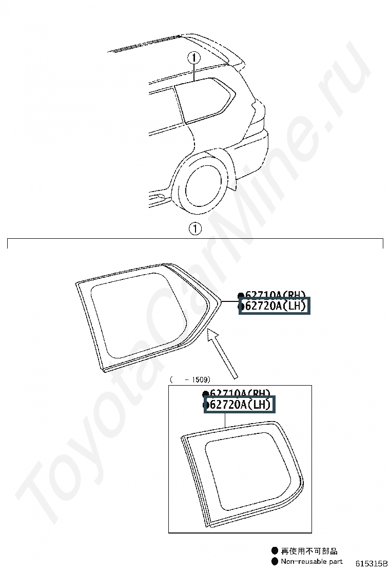 62720-60J20, WINDOW ASSY, QUARTER, LH