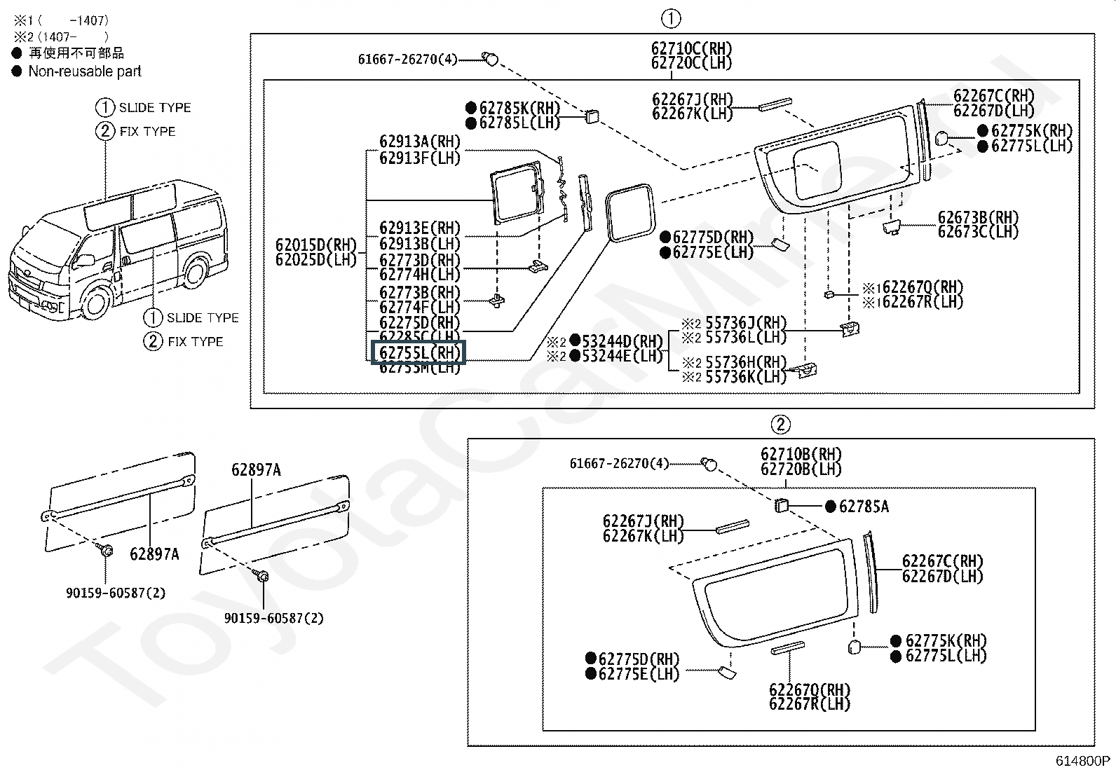 62755-26032, RUN, REAR SIDE WINDOW, LH