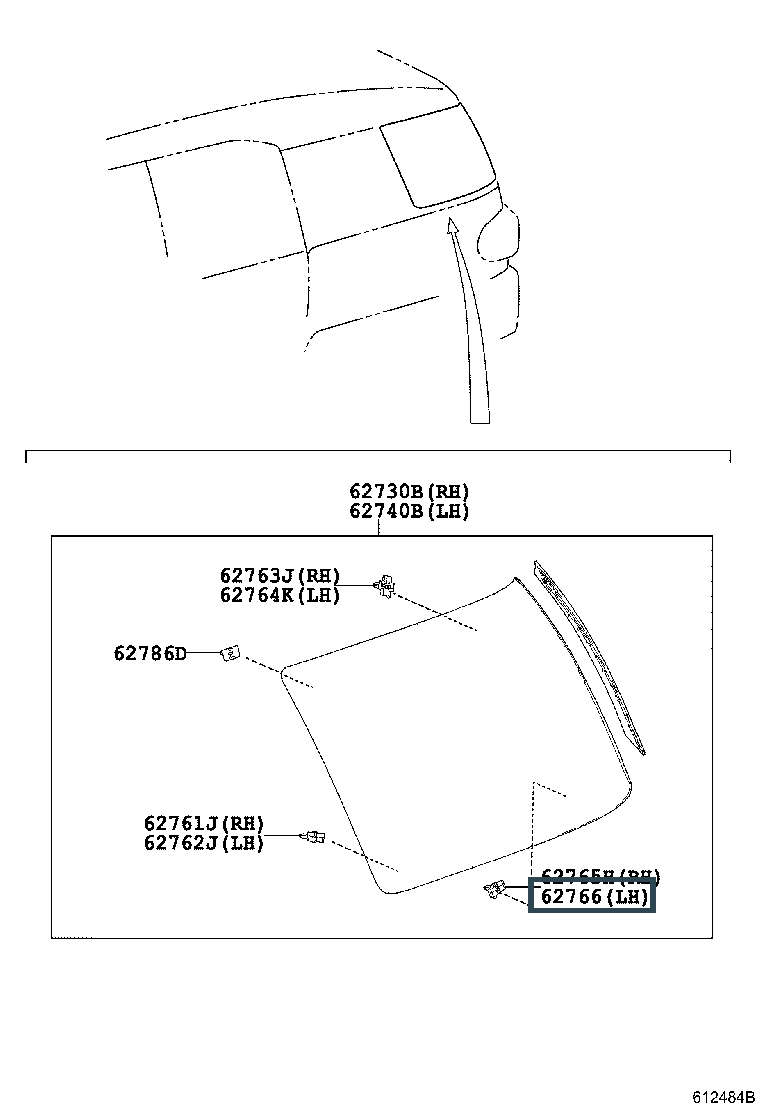 62766-35010, RETAINER, QUARTER WINDOW GLASS, LOWER LH