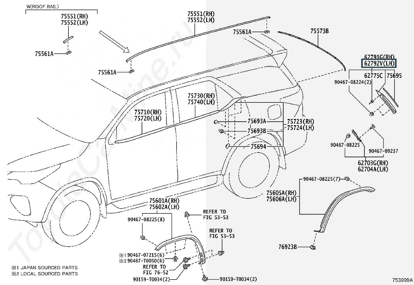 62792-0K010, MOULDING, QUARTER WINDOW, UPPER LH