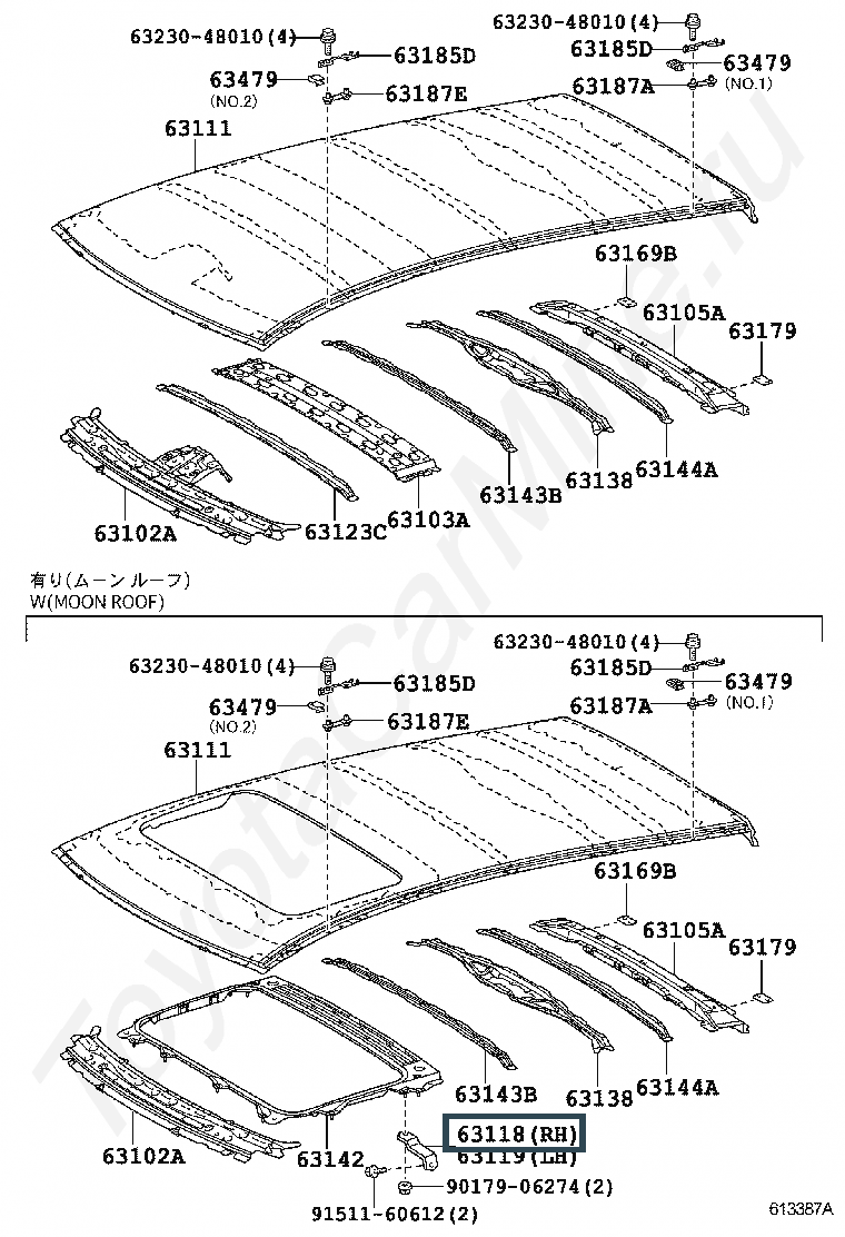 63118-48100, SUPPORT, ROOF PANEL, LH