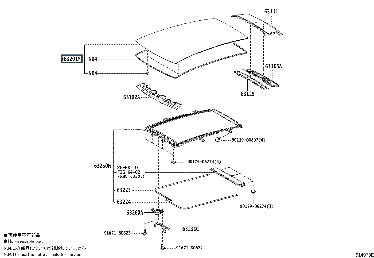 63201-78011, GLASS SUB-ASSY, ROOF WINDOW, NO.1