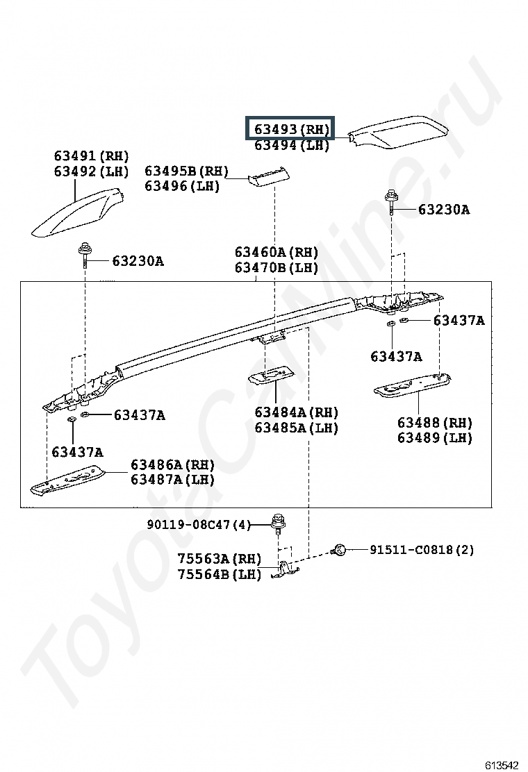 63493-60120, Крышка рейлинга задн.прав.