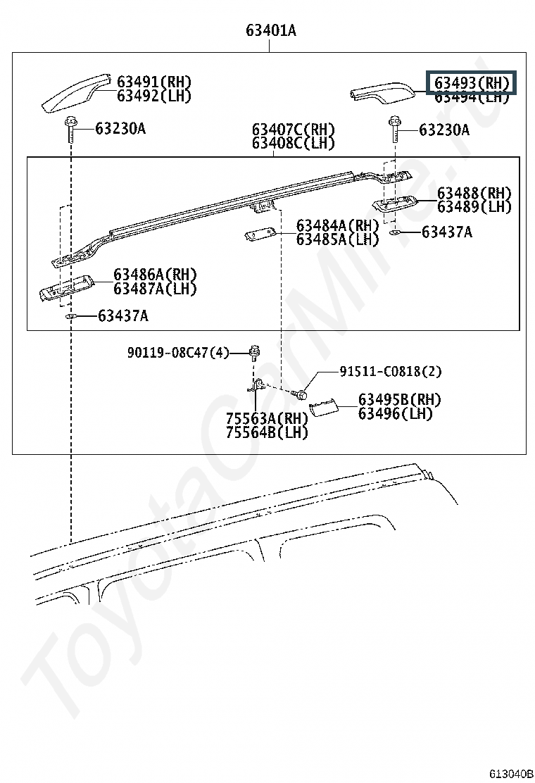 63493-60140-B0, Отделка правой задней ножки верхнего багажника
