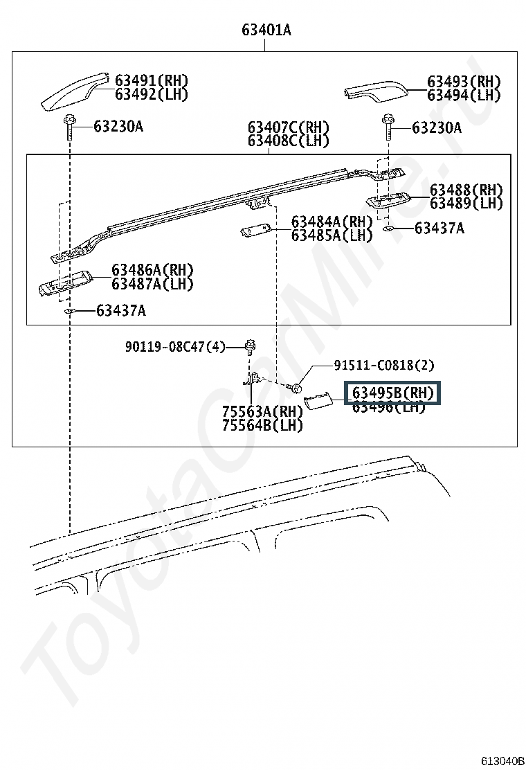 63495-60080-C0, COVER, ROOF RACK LEG, CENTER RH