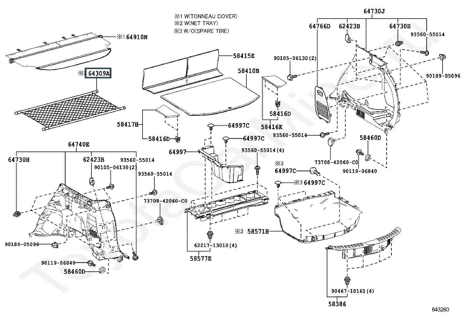 64309-42031-B0, POCKET SUB-ASSY, PACKAGE TRAY TRIM