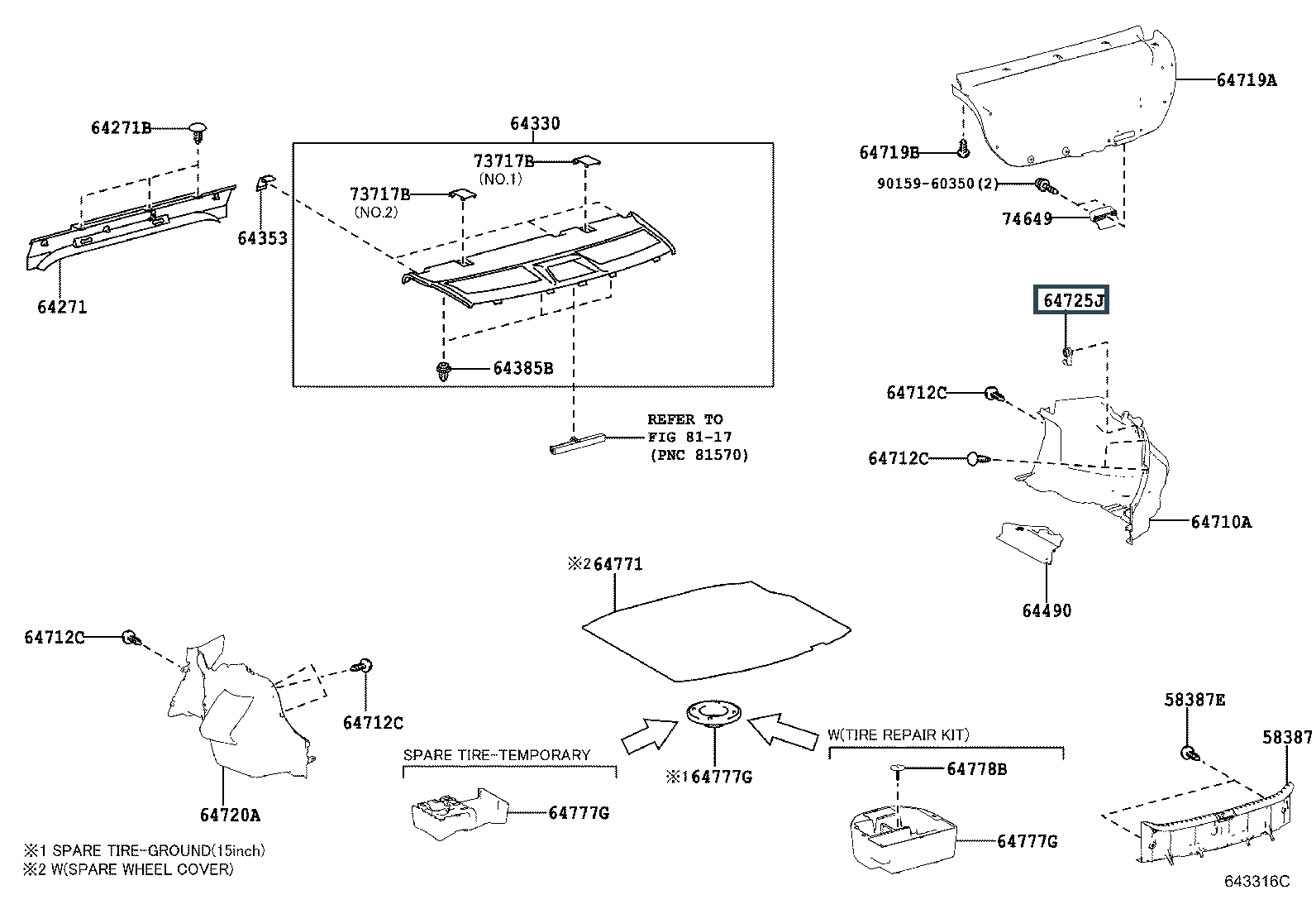 64725-33090-B0, HOOK, LUGGAGE COMPARTMENT TRIM, NO.1