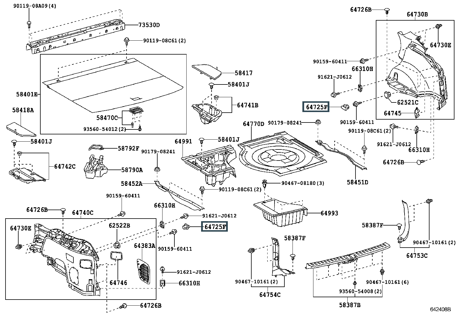 64725-48020-B0, HOOK, LUGGAGE COMPARTMENT TRIM, NO.1