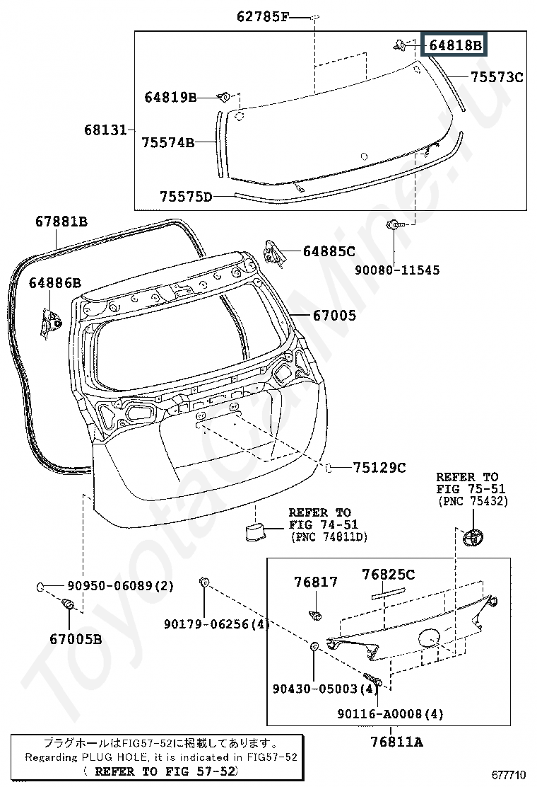 64818-0R030, SPACER, BACK DOOR GLASS, NO.1