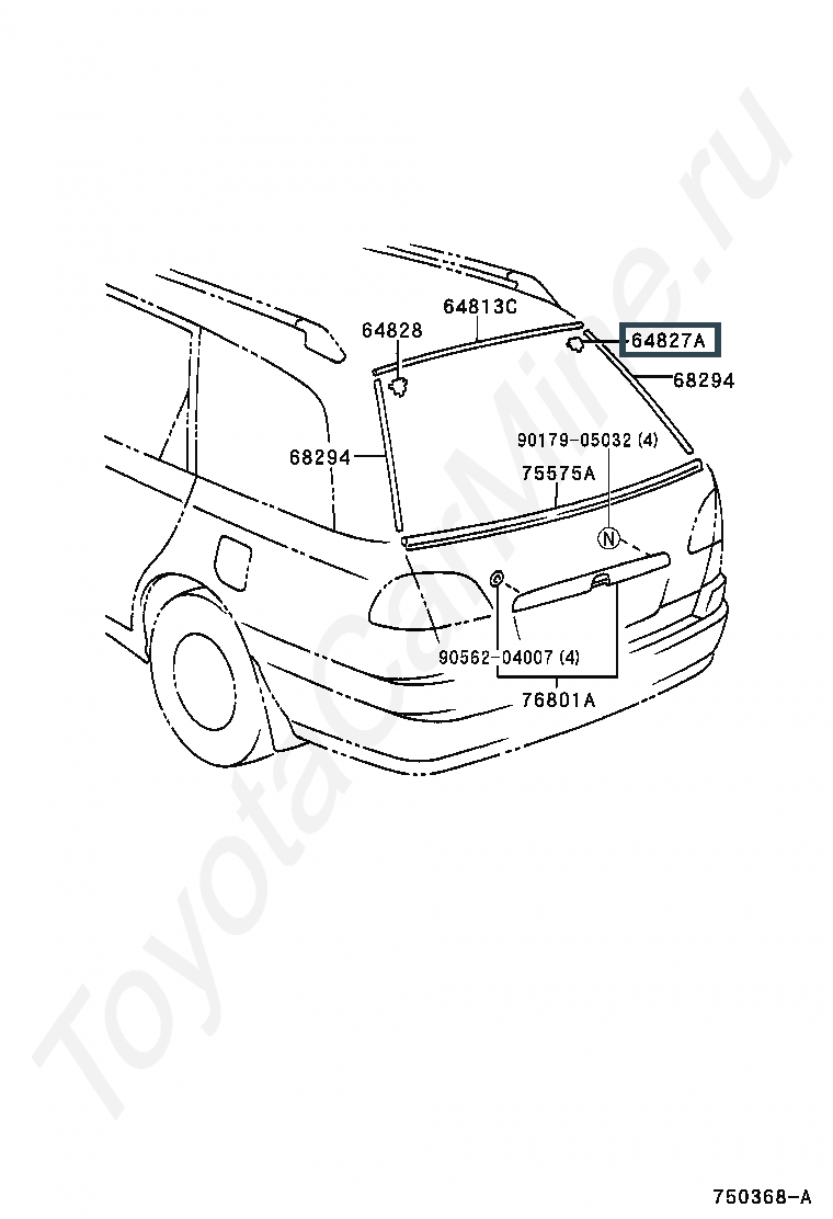 64827-20060, CLIP, BACK WINDOW GLASS, RH