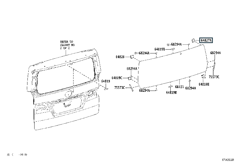 64827-26050, CLIP, BACK WINDOW GLASS, RH