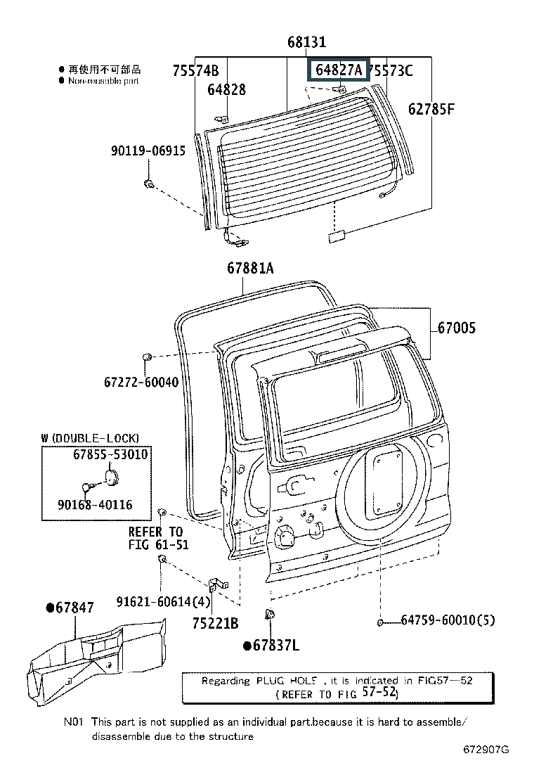 64827-60030, CLIP, BACK WINDOW GLASS, RH