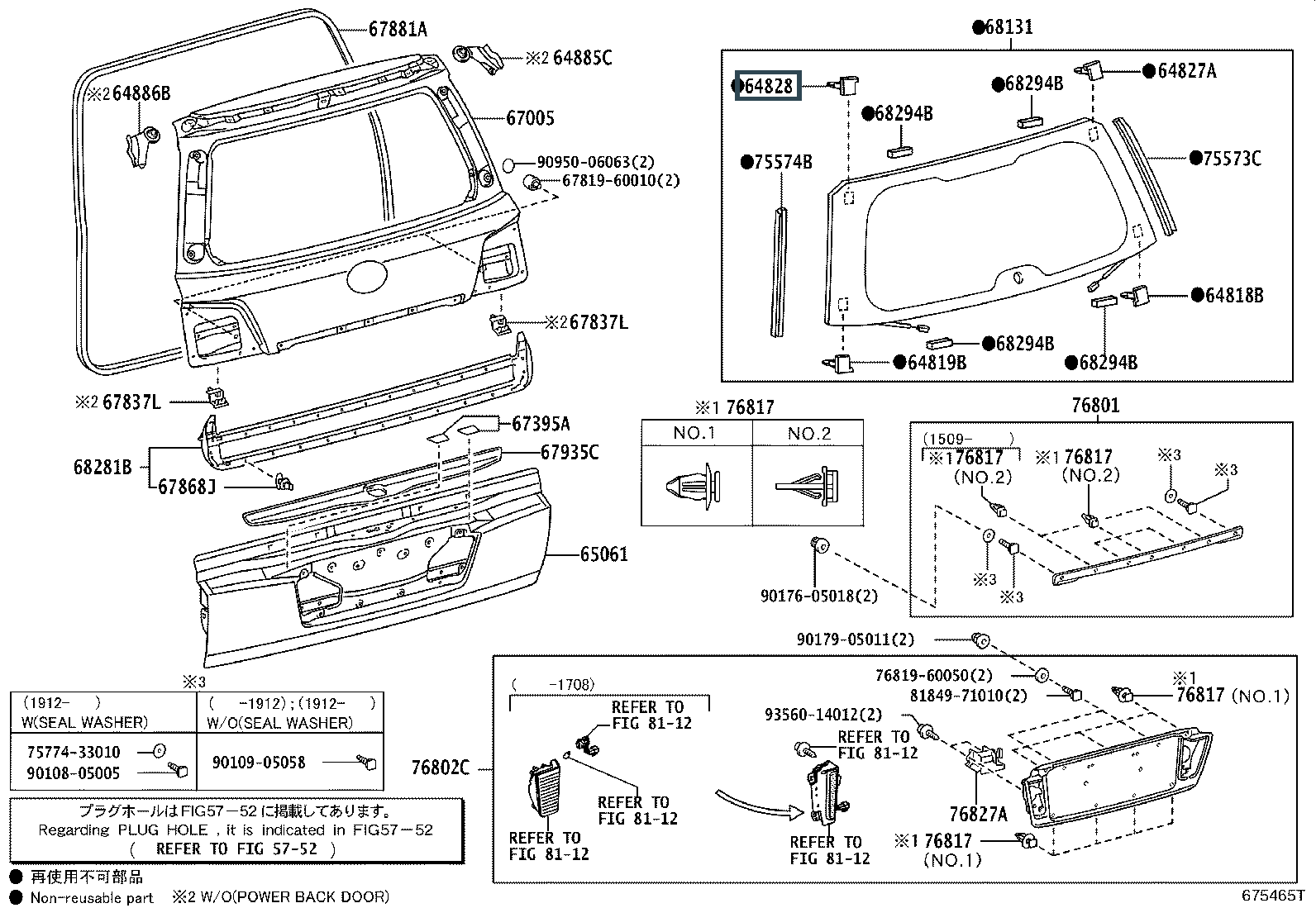 64828-60110, CLIP, BACK WINDOW GLASS, LH