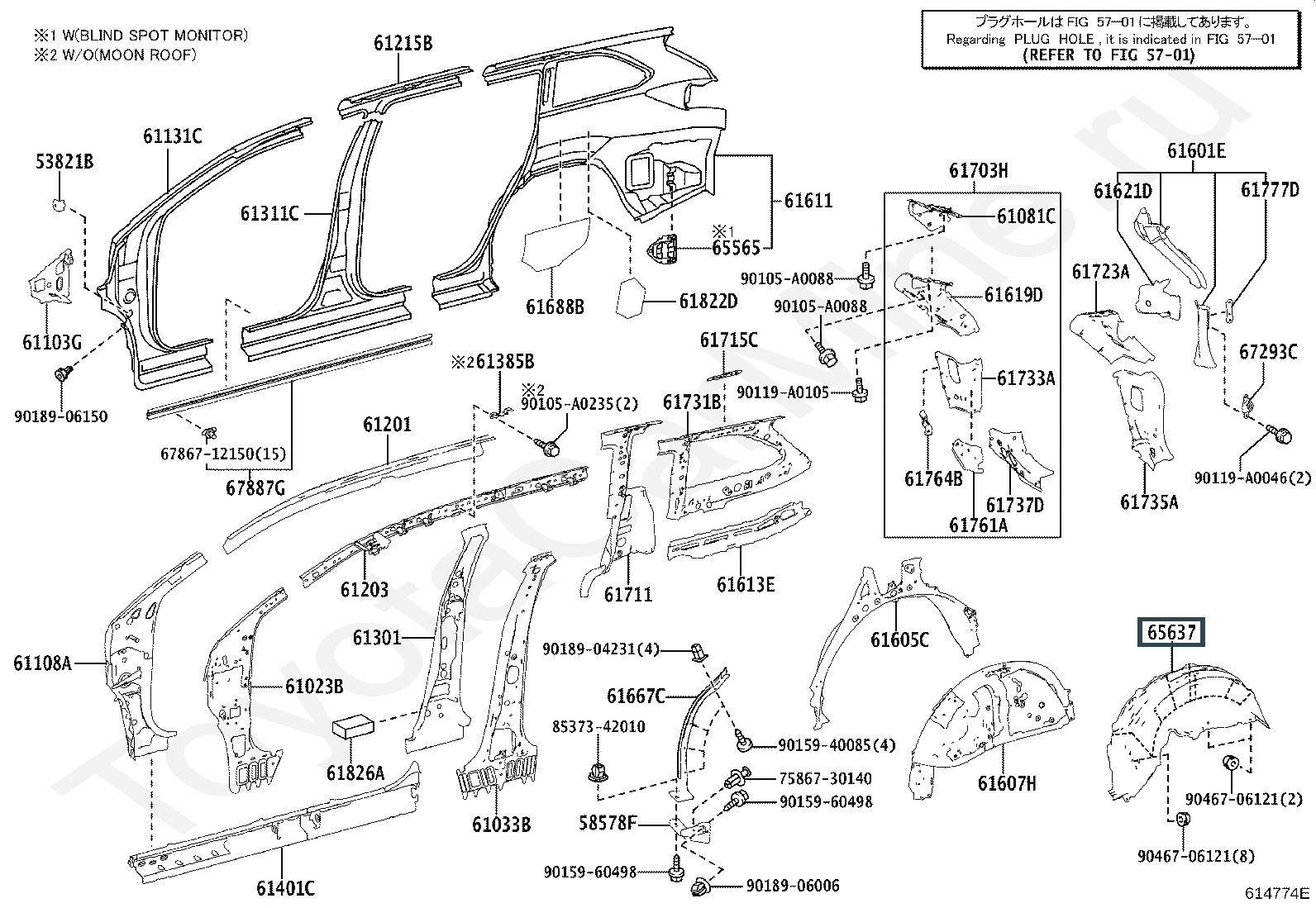 65637-0E040, Подкрылок передний правый