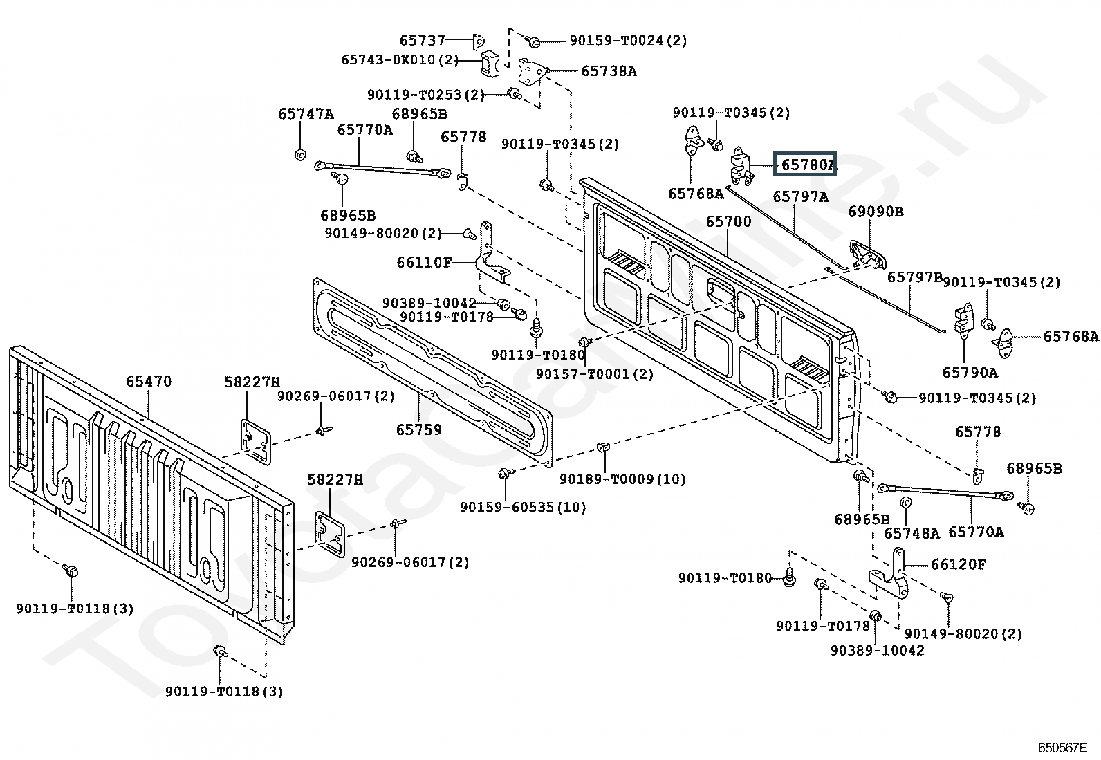 65780-0K010, LOCK ASSY, TAIL GATE, RH