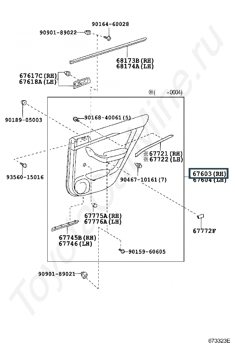 67010-05170-A0, BOARD SUB-ASSY, REAR DOOR TRIM, RH