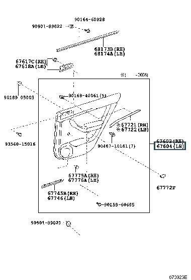 67020-05170-B0, BOARD SUB-ASSY, REAR DOOR TRIM, LH