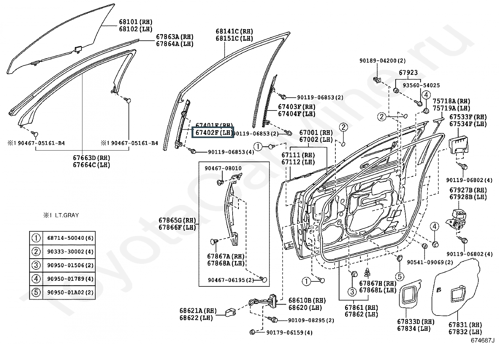 67402-50020, Направляющая стекла передняя