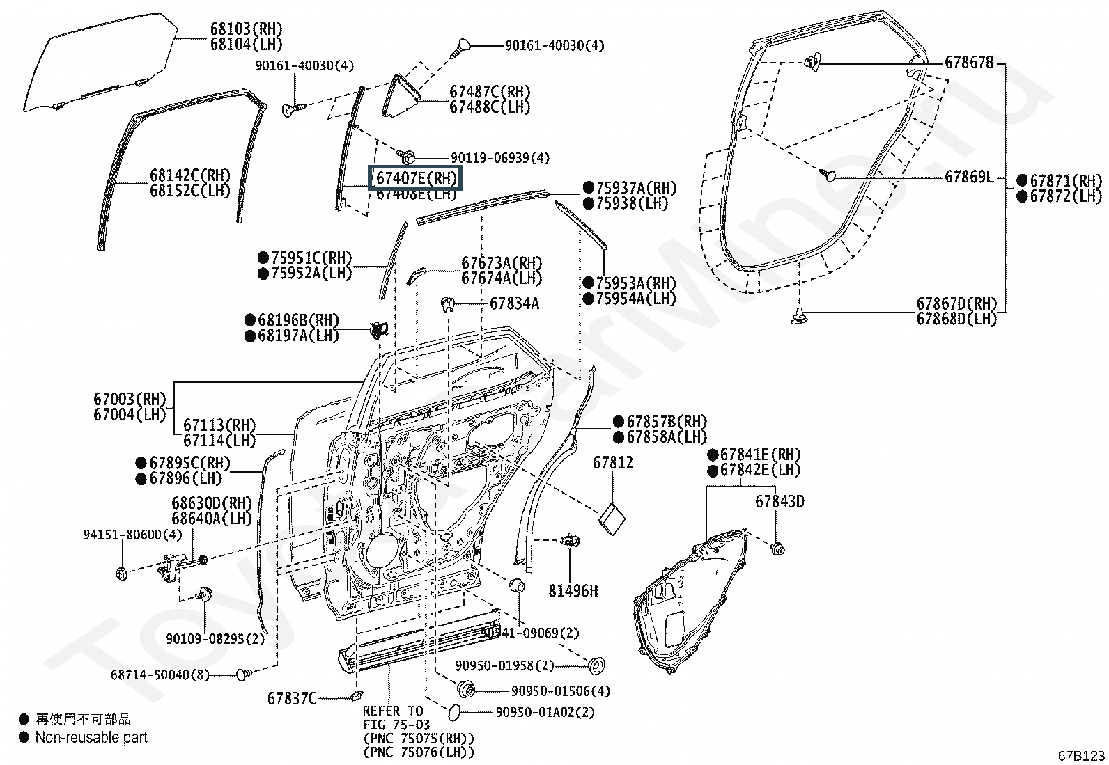 67407-48070, BAR SUB-ASSY, REAR DOOR WINDOW DIVISION, RH