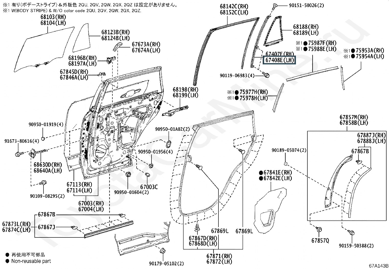67408-42050, BAR SUB-ASSY, REAR DOOR WINDOW DIVISION, LH