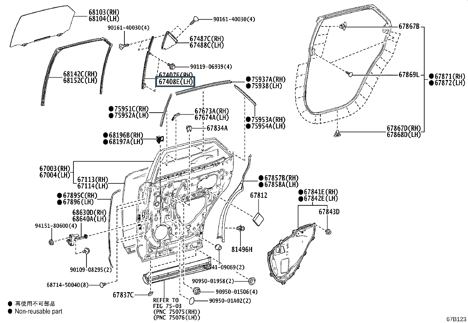 67408-48070, Направляющая стекла двери для Lexus, LH
